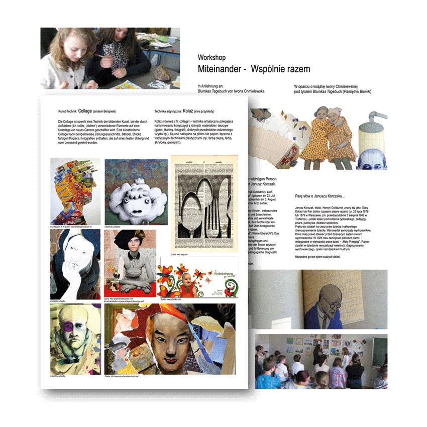 Schülerinnen und Schüler gestalten Bilder in Anlehnung an "Blumkas Tagebuch" von Iwona Chmielewska